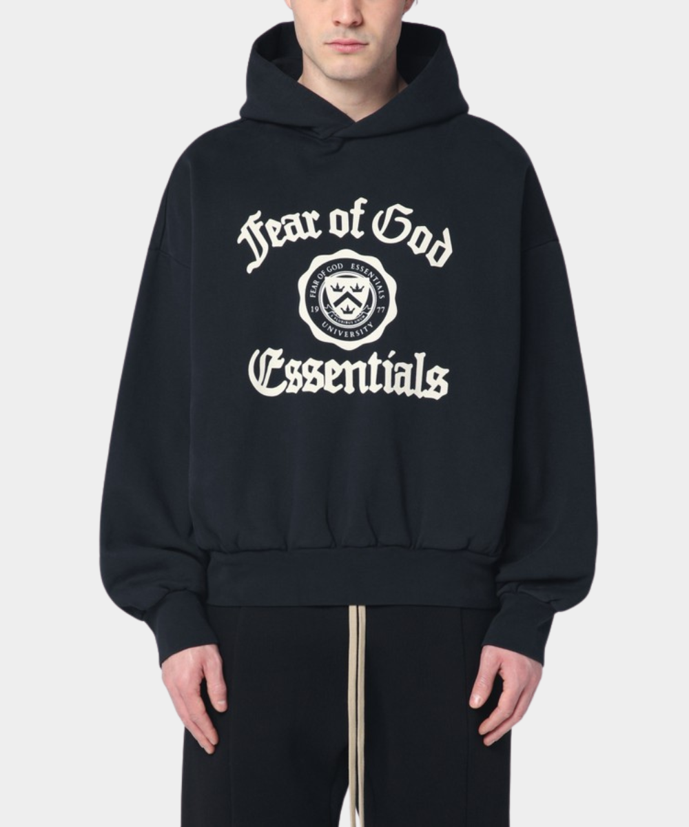 Con un enfoque en la comodidad y el estilo moderno, la sudadera recortada Fear of God Essentials aporta un toque fresco y contemporáneo a tu ropa de estar en casa. Confeccionada con algodón pesado y lujoso, presenta un lavado vintage para una textura rica y suave, decorada con un logo de estilo gótico en contraste y un gráfico de escudo universitario de la marca en el frente
